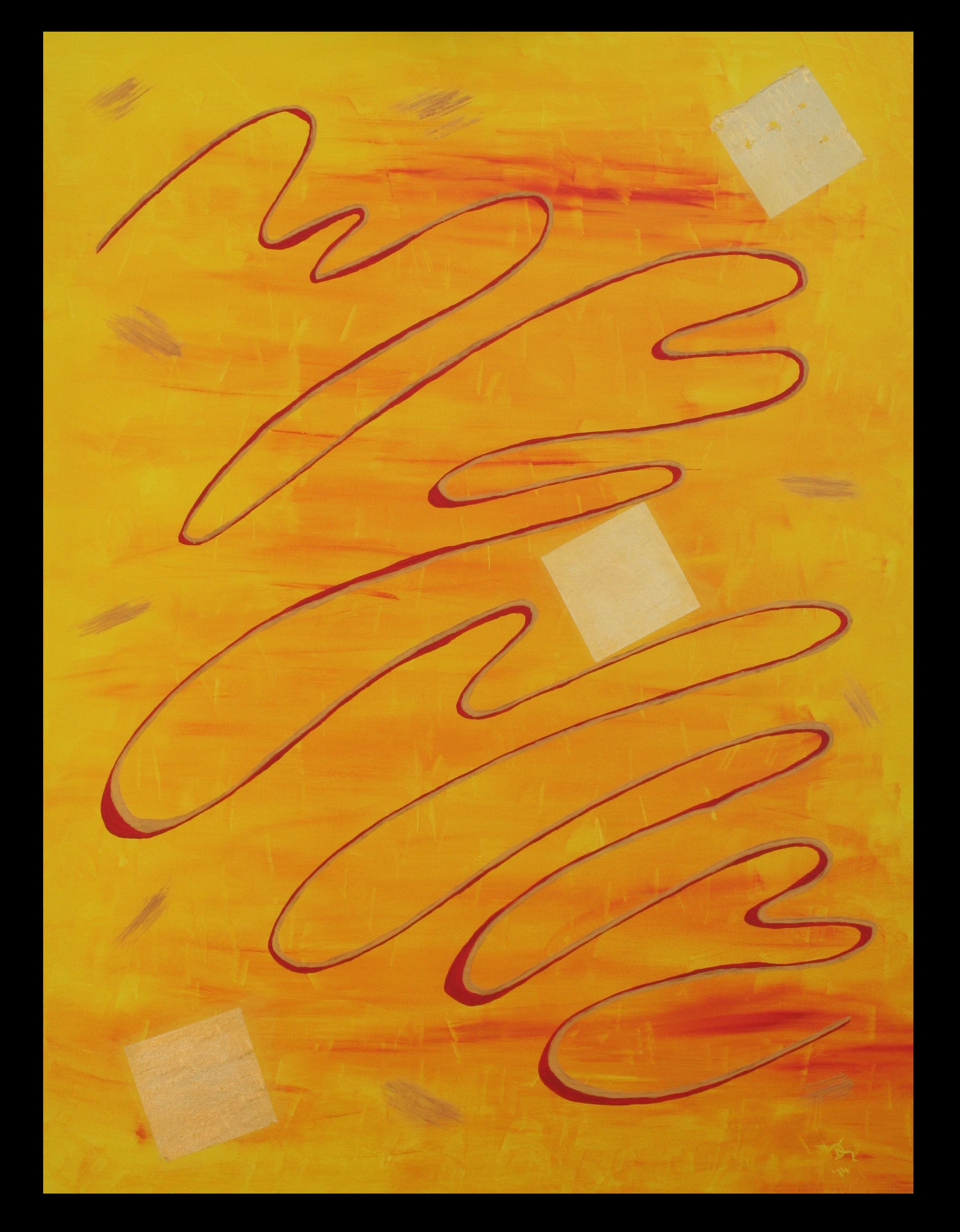 Auch wenn ein geschwungener, abwechslungsreicher Lebensweg seine Höhen und Tiefen hat, und somit keineswegs immer glamourös verläuft, so ist er in der Gesamtheit an Erfahrungswerten und Lernprozessen doch reichhaltig und wertvoll. Dieser Wert wird durch den goldenen Schatten angedeutet, der die Lebenslinie begleitet. Durch die Verwendung von echtem Blattgold ist zudem ein Hauch von Luxus zu spüren, den man durch die „goldenen“ – die glücklichen – Momente im Leben magisch anzieht, sobald man erkannt hat, dass es nur auf den glücklichen Augenblick ankommt, auf den man sich tief im Herzen einlässt. Jeder von uns hat dieses Glück und jeden nur erdenkbaren Luxus verdient – unabhängig von objektiven Kriterien. Genieße die schönen Momente, so intensiv du kannst.